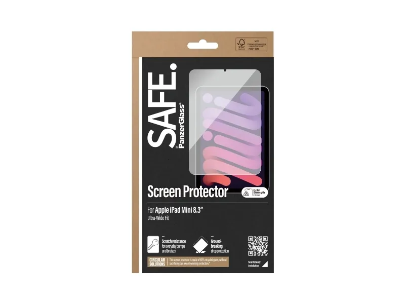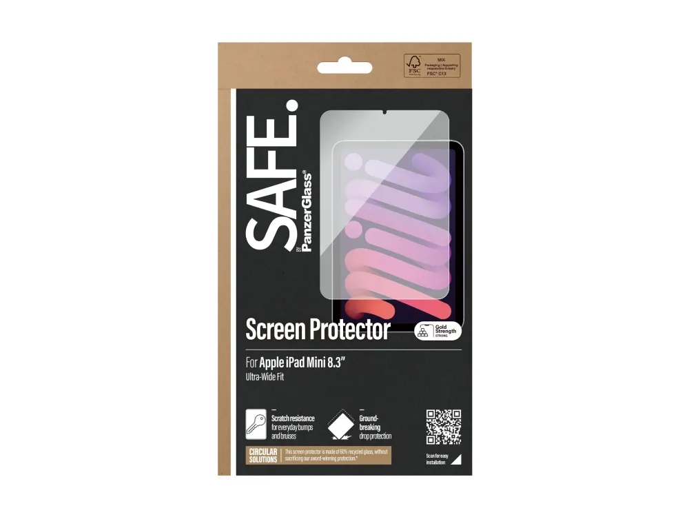 SAFE. by PanzerGlass - Skjermbeskyttelse for nettbrett, stylus / digital penn - ultrabred passform - glass - 8.3" - for Apple iPad mini (1. generasjon)