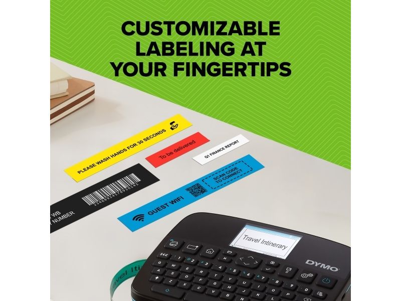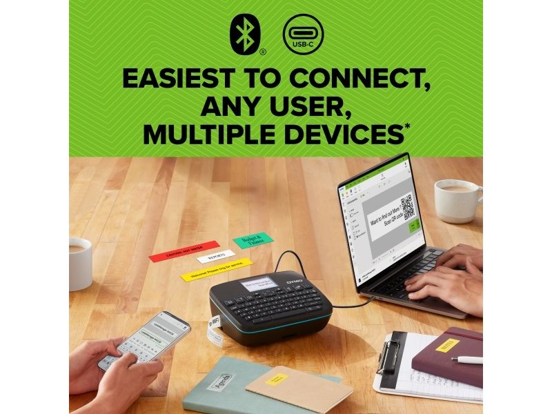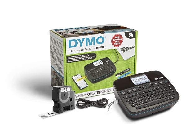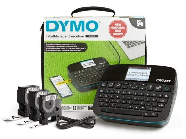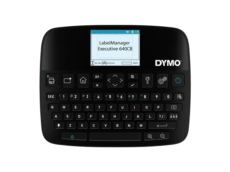 **When using the Label Manager Executive Connect mobile app or DYMO connect for desktop software (storage subject to device capacity)DYMO LabelManager Executive 640 CB Portable Label Printer Kit with Carry Case and 3 Label Cassettes | Compact QWERTY Label Maker | Bluetooth & USB Connectivity | Compatible with D1 Labels. Colour. Connectivity technology: Wired & Wireless, Bluetooth, USB port. Keyboard layout: QWERTY. Supported paper width: 6 - 24 mm. Product colour: Black
