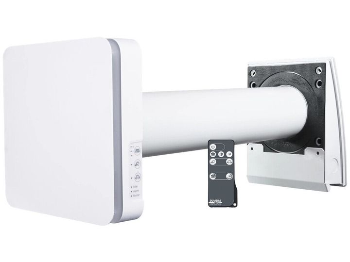 DUKA One Pro 25 S er en et-rums-ventilationsløsning med varmegenvinding. DUKA One monteres i ydervæggen, og kan derfor monteres der, hvor der et ventilationsbehov i boligen.DUKA One Pro 25 S har en mindre indvendig skærm, som er udført i et stilfuldt kvadratisk design med afrundede hjørner og har et mat overflade look.Alsidighed og mange installation mulighederDen indvendige skærm på DUKA One Pro 25 S har to indstillinger.(1) Efficiency mode hvor der er indblæsning 360 graders rundt om den indvendige skærm.(2) Comfort mode hvor den nederste del af skærmen trykkes ind, og luften ledes opad, hvorved eventuelle trækgener kan minimeres. Det giver mange alsidige installationsmuligheder i bl.a. opholds- og soverum samt i kælder. OpbygningDUKA One Pro 25 S leveres som en komplet enhed bestående af:En indvendig dual skærm med de elektroniske komponenter og betjening på siden500 mm rørføringKompakt kerne og motor blok med en længde på 165 mmLyddæmpende måtteUdvendig stormskærmFjernbetjeningInstallationssæt