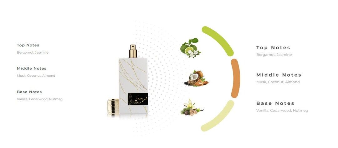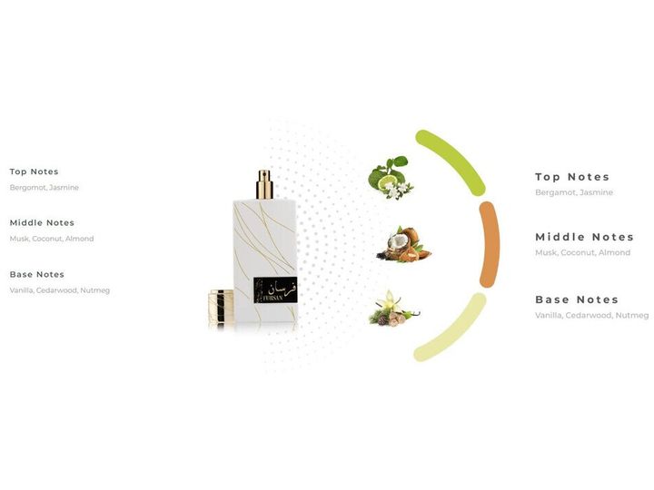 Toppnoter: Bergamott, jasmin Midtnoter: Moskus, kokosnøtt, mandel Basenoter: Vanilje, sedertre, muskatnøtt Khadlaj Fursan White og nevnte at den sies å være inspirert av Matiere Premiere Vanilla Powder. |