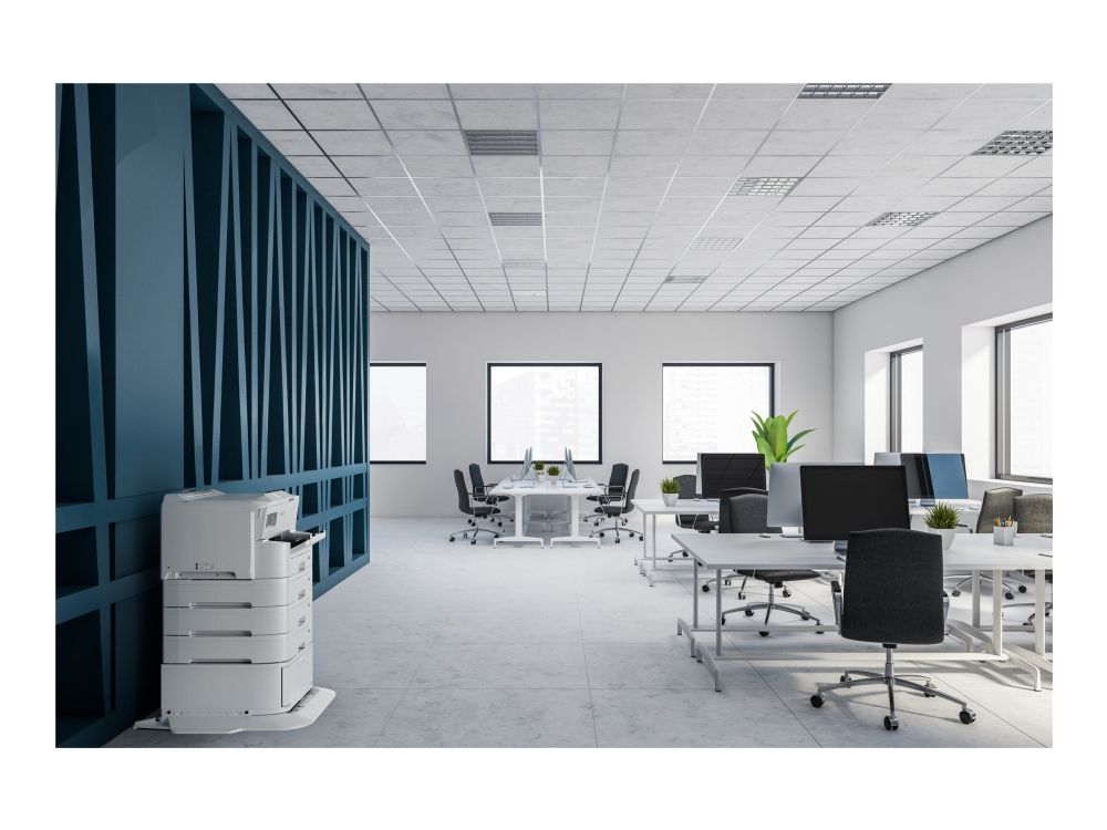 Epson WorkForce Pro EP-C7000DW er utviklet for å øke produktiviteten og effektiviteten i ethvert bedriftsmiljø. Med en robust månedlig driftssykluskapasitet på opptil 75 000 sider kan denne arbeidsgruppeskriveren enkelt håndtere store utskriftsvolumer. Skriveren har allsidig mediehåndtering, med plass til en rekke mediestørrelser, fra A3 til konvoluttformat, og en maksimal mediekapasitet på 1835 ark. Dette gjør det mulig å skrive ut lange serier uten hyppig omlasting, noe som maksimerer oppetiden og minimerer avbrudd.