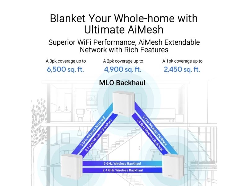 ASUS ZenWiFi BD4 - Wi-Fi-system - (3 rutere) - inntil 6500 kvadratfot - maske 1GbE, Wi-Fi 7, 2.5GbE, 5GbE Dobbeltbånd