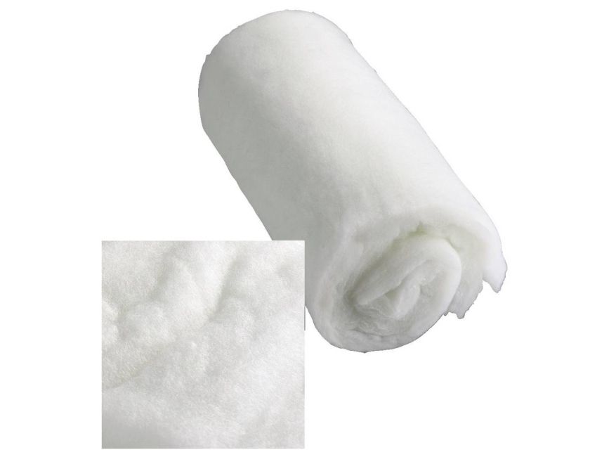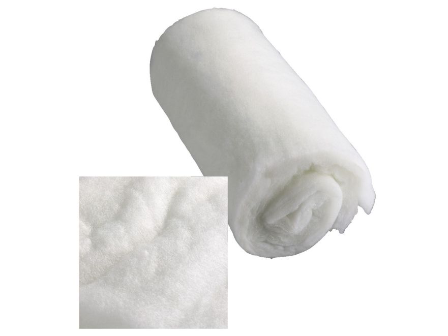 Hvidt special-dæmpningsmateriale af 100 % sorterren, fleksible og trækfaste polyesterfibre din 18165 testet i skadelige stoffer, UV-stabilt, sikkert mod skimmelsvampangreb og husstøvmider til ca. 20 liter 63 x 33 x 3,5 cm, 2 måtter rumvægt 300 g/m2