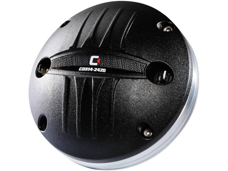 CDX14-2420/8 PA-HORNDRIVER, 70 W, 8 Ω Impedans (Z): 8 Ω Overførselsteknik: Kabel Frekvensområde 800-20000 Hz Anbef. Skillevæv. (fmaks.) (12 dB/oktav): 1200 Hz Nominel belastning (RMS) 70 W Musikbelastbarhed (MAKS.) 140 W Lydtrykniveau: 106,5 dB/W/m. Svingpolsdiameter: Dia. 60 mm Vibrationsspolemateriale: Kobberbelagt aluminiumfladtråd Udgangsåbning: Dia. 36 mm Installationsåbning: Afhængigt af horn Indbygningsdybde: Afhængigt af horn Hulcirkel-diameter: Dia. 102 mm (4x M6) Mål: Dia. 116 mm x 56 mm Udvendig diameter: Dia. 116 mm Bredde: Dia. 116 mm Højde: Dia. 116 mm Dybde: 56 mm Farve: Sort Tilladt driftstemperatur: 0-40 °C Vægt: 1,75 kg Emballageenhed: 1 Højtalertype 1,4 Dimensioner (B x H x L) 0,135 x 0,07 x 0,175 m. Bruttovægt: 1,91 kg Nettovægt: 1,75 kg PA-HORNDRIVER, 70 W, 8 Ω Førsteklasses 35-mm-kompressionsdriver (1,4) med 60-mm-svingspole (2,4) og neodymmagnet fase-plug med maksimal Modalundertrykkelse dybtrukket titan-membran og polyimid-sik modtager delefrekvens 1200 Hz (12 dB/oktav)