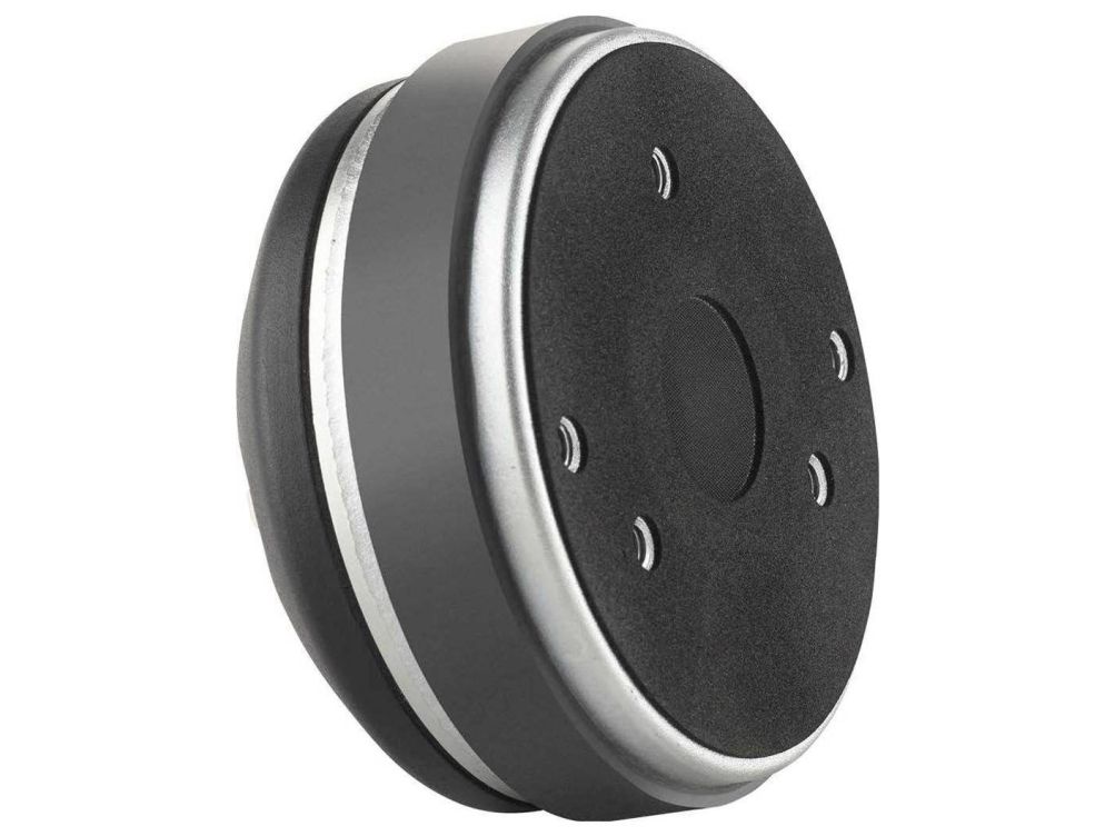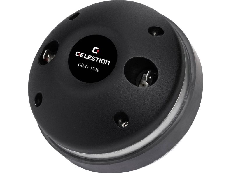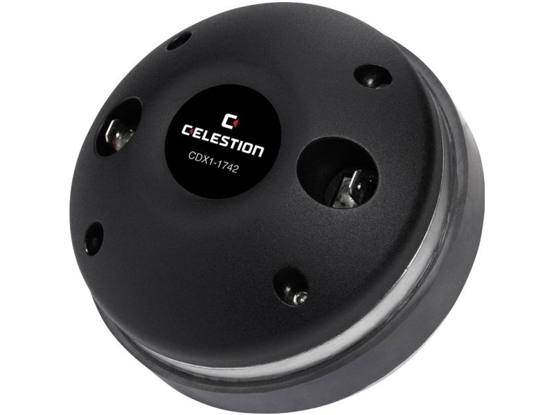 CDX1-1742/8 PA-HORNDRIVER, 50 W, 8 Ω Impedans (Z): 8 Ω Overførselsteknik: Kabel Frekvensområde 1200-20000 Hz Anbef. Skillevæv. (fmaks.) (12 dB/oktav): 2000 Hz Nominel belastning (RMS) 50 W Musikbelastbarhed (MAKS.) 100 W Lydtrykniveau: 106 dB/W/m. Svingpolsdiameter: Dia. 44 mm Vibrationsspolemateriale: Kobberbelagt aluminiumfladtråd Udgangsåbning: Dia. 25 mm Installationsåbning: Afhængigt af horn Indbygningsdybde: Afhængigt af horn Hulcirkel-diameter: Dia. 76 mm (2 x M6),;dia. 57 mm (3x M6) Mål: Dia. 100 mm x 53,5 mm Udvendig diameter: Dia. 100 mm Bredde: Dia. 100 mm Højde: Dia. 100 mm Dybde: 53,5 mm Farve: Sort Tilladt driftstemperatur: 0-40 °C Vægt: 1,4 kg Emballageenhed: 1 Højtalertype: 1 Dimensioner (B x H x L) 0,14 x 0,07 x 0,17 m. Bruttovægt: 1,55 kg Nettovægt: 1,4 kg PA-HORNDRIVER, 50 W, 8 Ω Førsteklasses 25-mm kompressionsdriver (1) med 44-mm svingspole (1,75) og ferritmagnet polyamid-membran og -sik Sound-Castle-blød spændmembran af den næste generation modtager delefrekvens 2000 Hz (12 dB/oktav) 2-huls- og 3-huls-skrue-montering