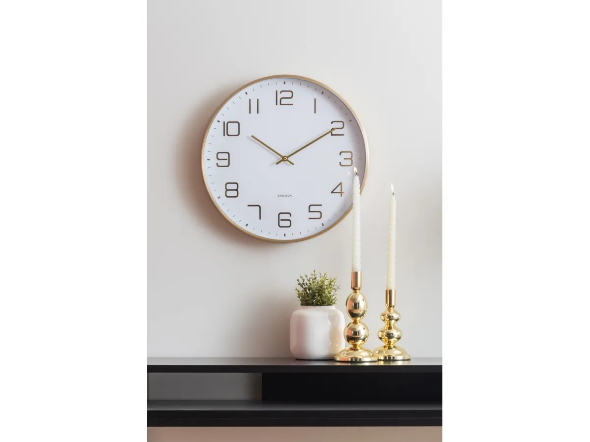 The Elegance Glow wall clock by Karlsson has invented elegance. Its design is graceful and its dial is ornate. For those who love a classic clock with an extra elegant touch, the Elegance Glow by Karlsson is the place to be. Karlsson KA5973WH. Placement supported: Wall, Type: Digital clock, Form factor: Round. Power source type: Battery, Battery type: AA. Depth: 42 mm, Diameter: 40 cm