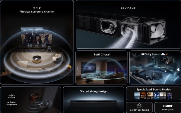 TCL Q75 Series Q75HE - Lydplankesystem - for TV - 5.1.2-kanal - trådløs - Wi-Fi, Bluetooth 5.1 - mørk titan