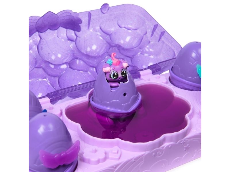 Experience a neon color hatch with the Hatchimals Alive Neon Rainbow Carton. With your love and care, these Hatchimals come to life with neon eggs that hatch in water, changing the water’s color. Open the sparkly lid to discover a built-in hatch zone and 5 Hatchimals eggs containing 5 characters, each inspired by Moody Midnight hues. Before hatching, choose a spot that’s easy to clean and protect your play area. Set an egg in the hatch zone and remove the wings, then fill the area with water. In seconds, the water changes color as your neon friend starts revealing itself. Once all 5 super cute characters have been revealed, attach their wings, and use the 6 nurturing accessories (rattle, blocks, rubber duck and more) to add to your imaginative storytelling. Dry the carton and display the characters inside or take the carton on-the-go. Those who enjoy action figures, small toys, dolls, and doll house play will love Hatchimals surprise toys. A fun gift idea for birthday gifts for girls and boys, Easter egg fillers, holiday gifts and more. Hatch the Neon Rainbow with the Hatchimals Alive Carton.