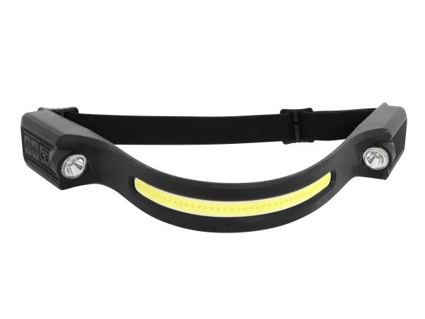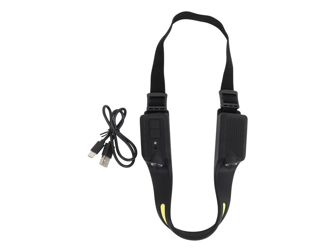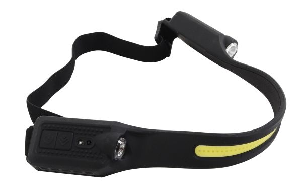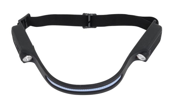 TYZON® genopladelig LED-pandelampe i silikone med LED-lysbånd, 2 sidelamper til spotlys og håndstyret sensor til at tænde og slukke lyset. Lysbåndet giver god synlighed og belysning foran dig, mens sidelamperne giver kraftigere lyskegler, så du kan se længere i mørket. Begge lystyper har høj og lav indstilling.