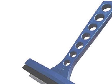 Isskraber af slagfast plast med én skrabeside af acetalplast og én af gummi.