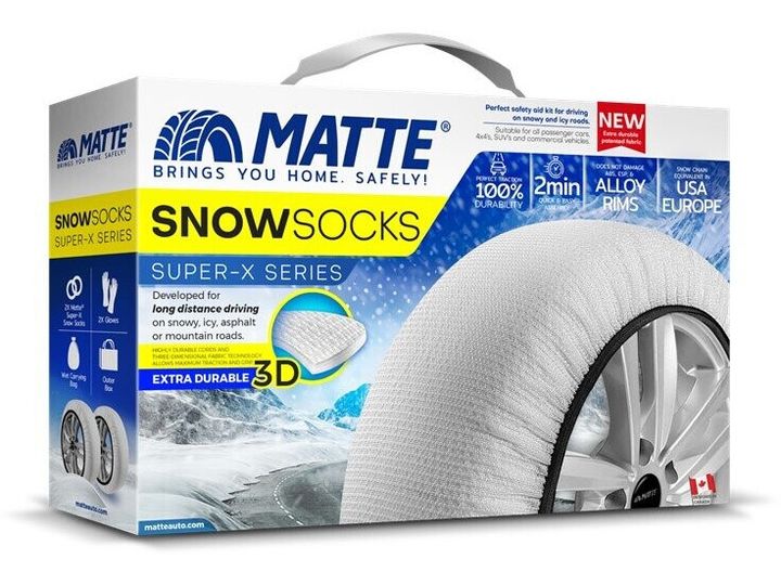 MATTE Snow Socks, eller skal vi kalle dem snøsokker, har samme funksjon som tradisjonelle kjettinger. De gir dekket et ekstra grep som holder hjulet i bevegelse på alle underlag. Der selv det beste vinterdekket kan gi opp, kan snøsokkene få bilen i bevegelse igjen. Dermed har de store fordeler fremfor tunge og uhåndterlige kjettinger. Mange nye bilmodeller og spesielt mange elbiler har ikke lov til å bruke tykke, tradisjonelle kjettinger - da er snøsokker et godt alternativ. MATTE Snow Socks er anerkjent av alle bil- og dekkprodusenter som et alternativ til kjettinger. De er TÜV-sertifiserte og helt lovlige å bruke. Snøsokkene oppfyller de grunnleggende kravene i direktiv 2001/95/EF om generell produktsikkerhet. Produkttestet: i samsvar med EN 16662-1:2020