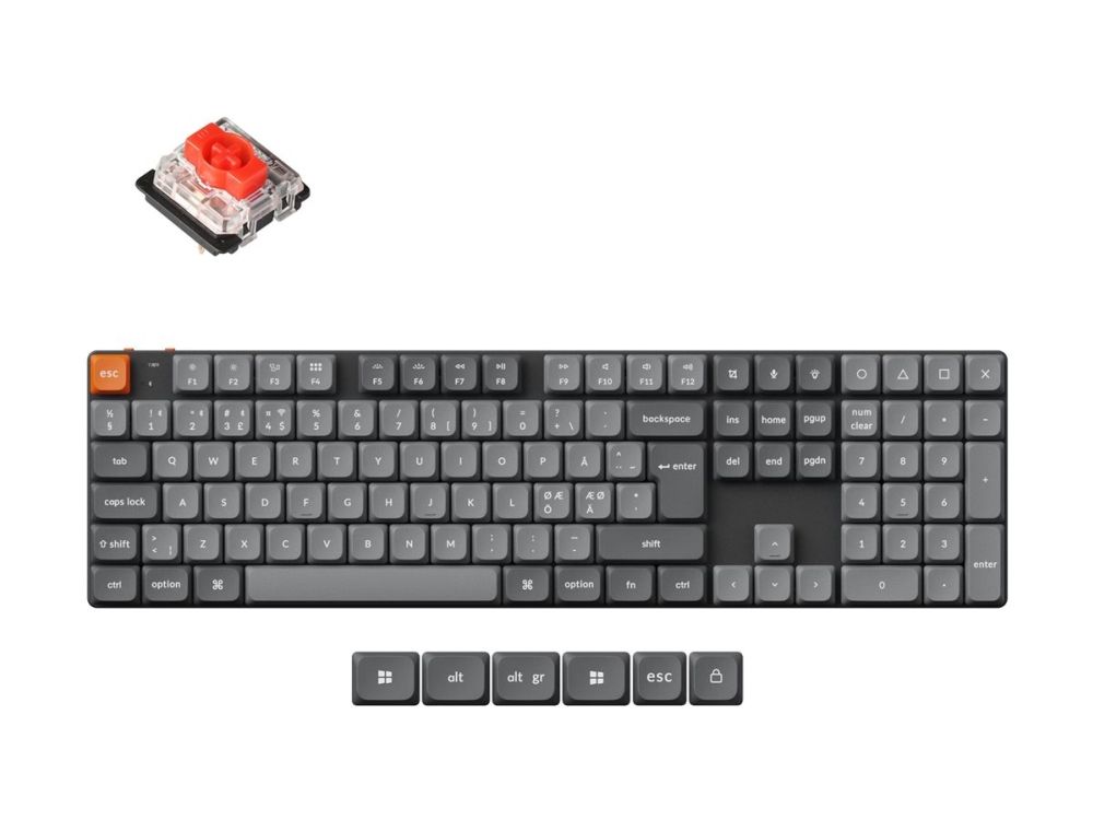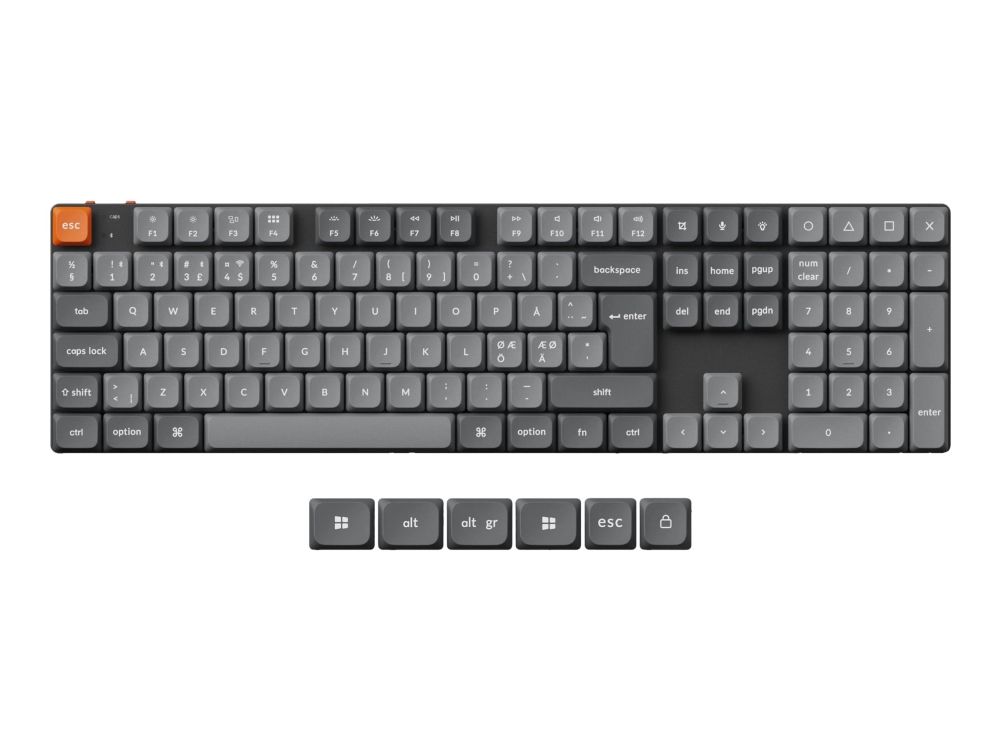 Keychron K5 MAX er utstyrt med 108 taster og 12 multimedieknapper som gir enkel tilgang til funksjoner og snarveier, noe som øker produktiviteten. Tastaturet er laget av slitesterkt aluminium og ABS-materialer, og har en solid konstruksjon som tåler daglig bruk. Den avtakbare kabelen gir ekstra fleksibilitet og gjør det enkelt å transportere og oppbevare ved behov.