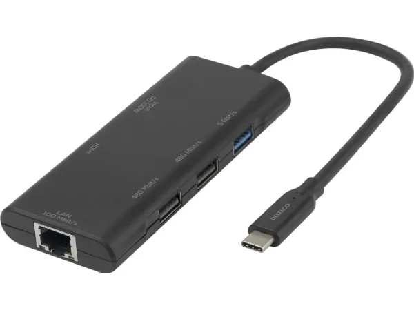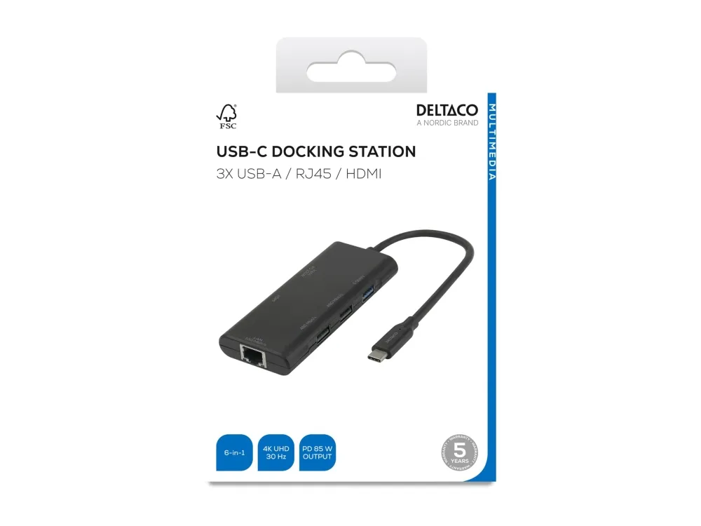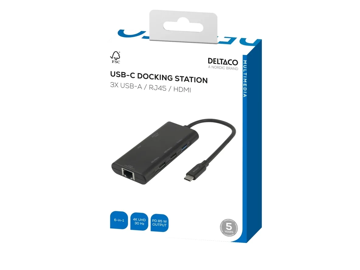 DELTACO - Dokkingstasjon - USB-C - HDMI - 100Mb LAN