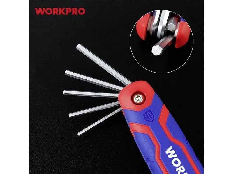 WorkPro 8-delt sammenklappelig sekskantnøglesæt (metrisk)