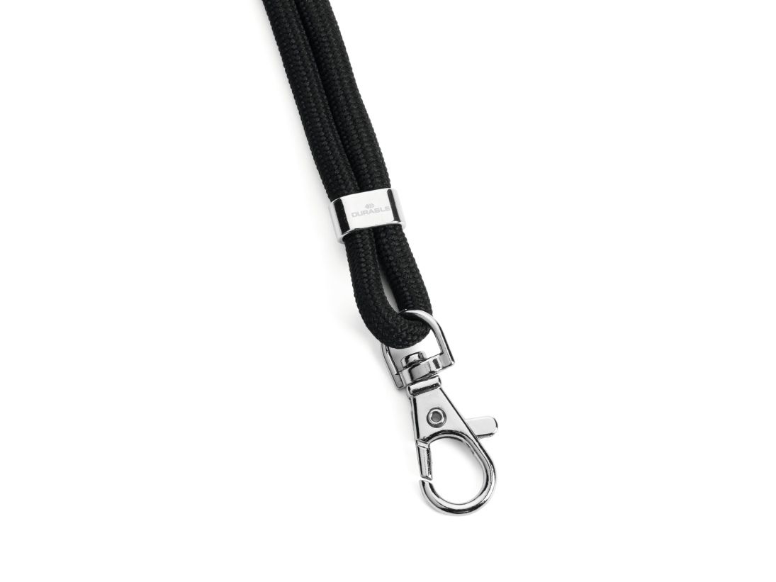 Durable 824101. Product type: Badge lanyard, Product colour: Black, Quantity per pack: 1 pc(s). Strap length: 46 cm, Width: 6 mm