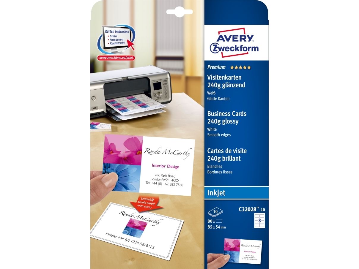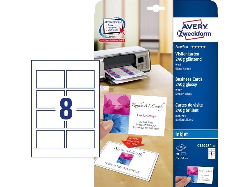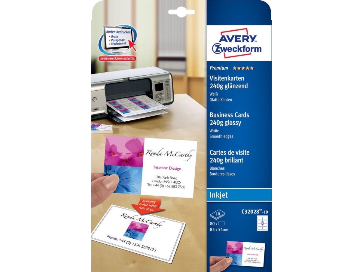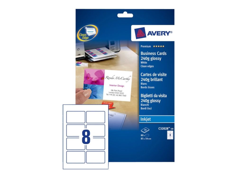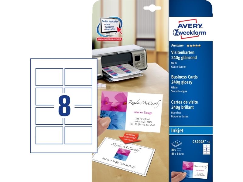 Avery Quick&Clean - Blank - hvit - 220 g/m² - 10 stk 8 forretningskort med bilde