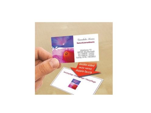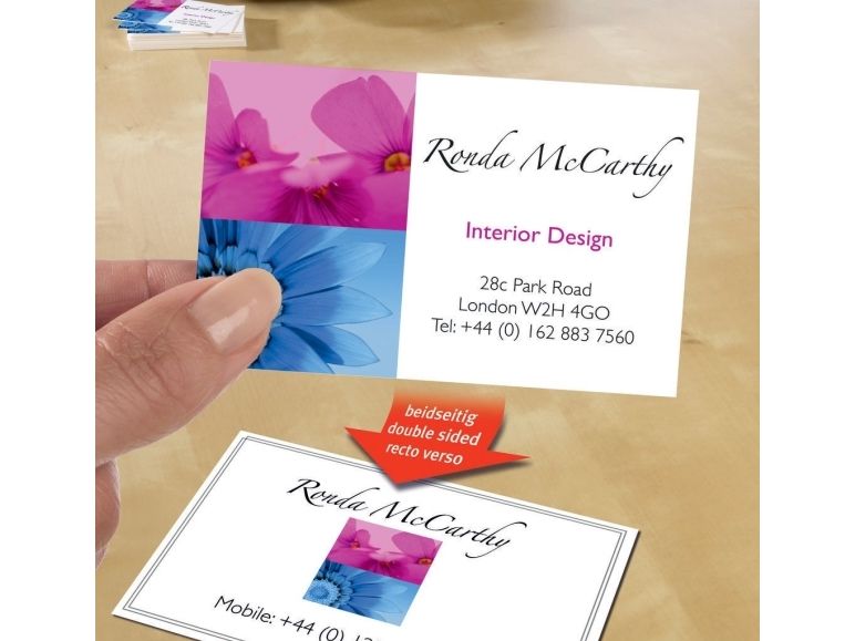 - Double sided business cards allow you to print on both sides - no need to fold or stick!