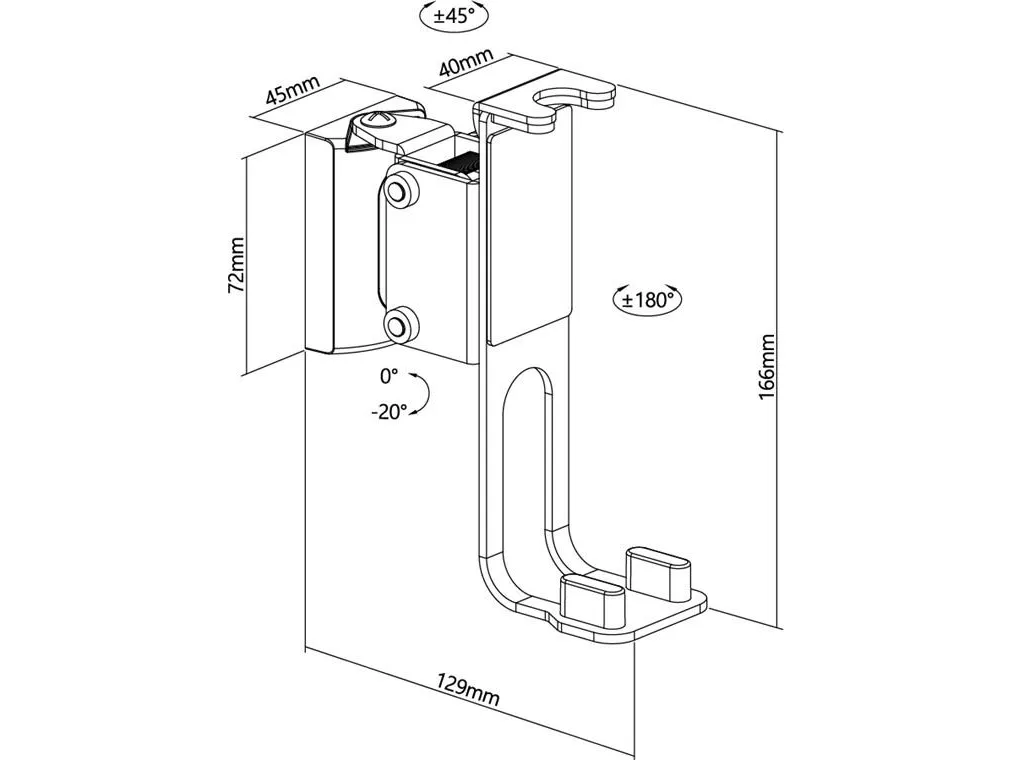 kompatibel med Sonos One og Sonos One SL Højttalerbeslag af robust metal til sikker vægmontering af satellithøjttalere, der vejer op til 3 kg Kompatibel med højttalere som Sonos One, Sonos One SL, Sonos Play:1 Takket være de stabile led kan vægbeslaget vippes trinløst op til -20° og drejes ±45° Beslaget kan også drejes ±180°, så højttaleren også kan hænges på hovedet Med generøs kabelåbning til nem tilslutning og frakobling af lyd- og netkabler Højttalerbeslaget er nemt at fastgøre til væggen ved hjælp af skruer