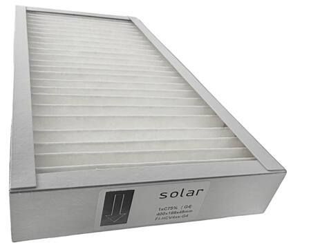 Panelfilter, filterklasse G4 til Dantherm HCV4xx i papramme, 1 stk. ISO C75%. Mål 400x199x48 mm. Der anvendes 2 stk. pr. anlæg.