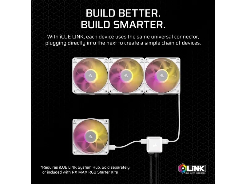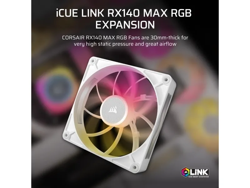 CORSAIR iCUE Link RX140 MAX RGB Expansion - Kabinettvifte - 140 mm - hvit