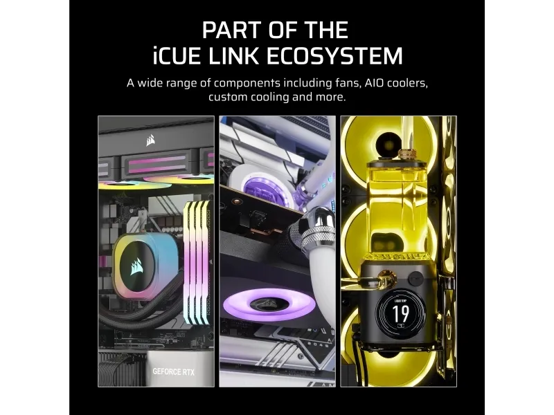 The CORSAIR iCUE Link RX140 MAX RGB Expansion is designed to enhance cooling performance and aesthetics in any PC build. With a fan diameter of 140 mm and a height of 30 mm, this case fan operates at a rotation speed ranging from 300 to 1600 rpm, allowing for customized airflow that varies from 27.2 to 102.9 cfm. The Pulse-width modulation (PWM) support ensures efficient cooling while minimizing noise levels from 10 to 31 dBa, making it suitable for quiet environments or high-performance systems. Equipped with addressable RGB capabilities, the fan adds vibrant lighting options to your setup, seamlessly integrating with the iCUE software for personalized lighting effects. The magnetic dome bearing technology enhances durability and longevity, contributing to stable performance over time. This expansion pack comes complete with essential mounting hardware, including 8 screws for the radiator, 2 iCUE Link connectors, and a 13.5 cm iCUE Link cable, making installation straightforward and efficient.