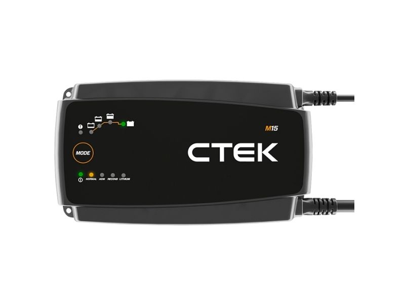 CTEK MARINELADER M15 15 AMP./ M15 lader hurtigt og effektivt mange forskellige marinebatterier. M15 er den perfekte 15 A-batterilader til alle bådejere. Den har mange forskellige funktioner ink. et Recond-trin for genoprettelse af dybt udladede batterier. Våde og Ca/Ca-batterier og en temperatursensor som optimerer opladningen hvis temperaturen afviger fra + 25°C. Den har også litiumion (LiFePO4) trin for LFP (LiFePO4) batterier. M15 Leveres med et langt kabel på 4 meter med M10 ringterminaler for en nem installation på din båd.