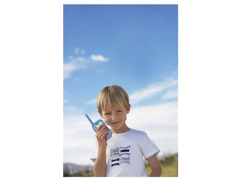 Funktioner: 2 walkie talkies designet til små hænder 2-vejs kommunikation Hårde antenner Rækkevidde op til 200m. udendørs Bæltespænde Ekskl. 6xAAA batterier