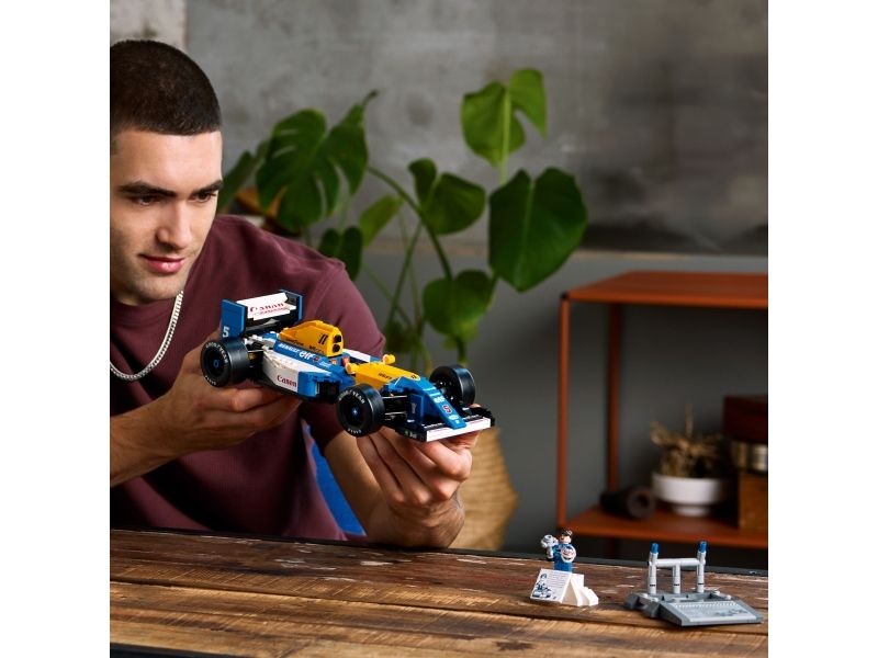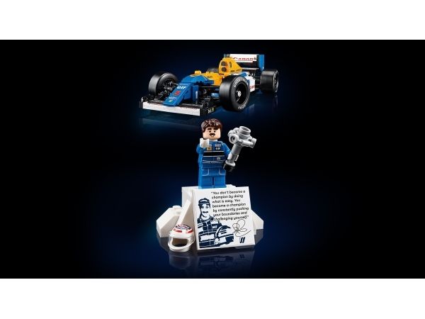 LEGO Icons Williams FW14B har fungerende styring, brede bakdekk med «Goodyear»-trykk og en detaljert motor samt en utstillingssokkel med detaljer og statistikk om kjøretøyet. Minifiguren av Nigel Mansell er utstyrt med hjelm, og på seierspallen er det foto og sitat fra den legendariske F1-føreren.