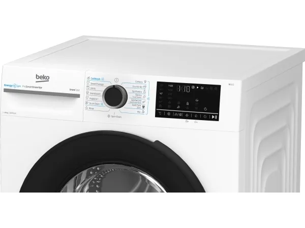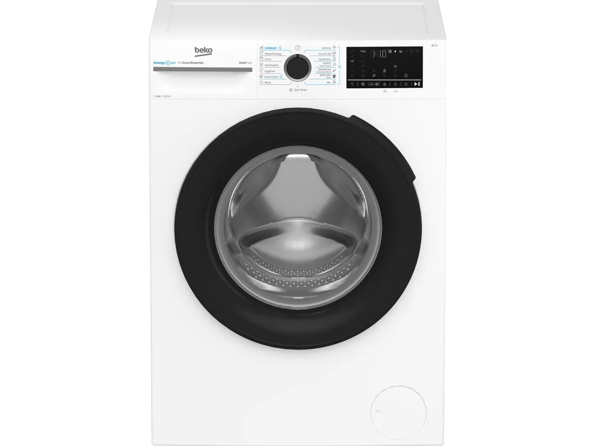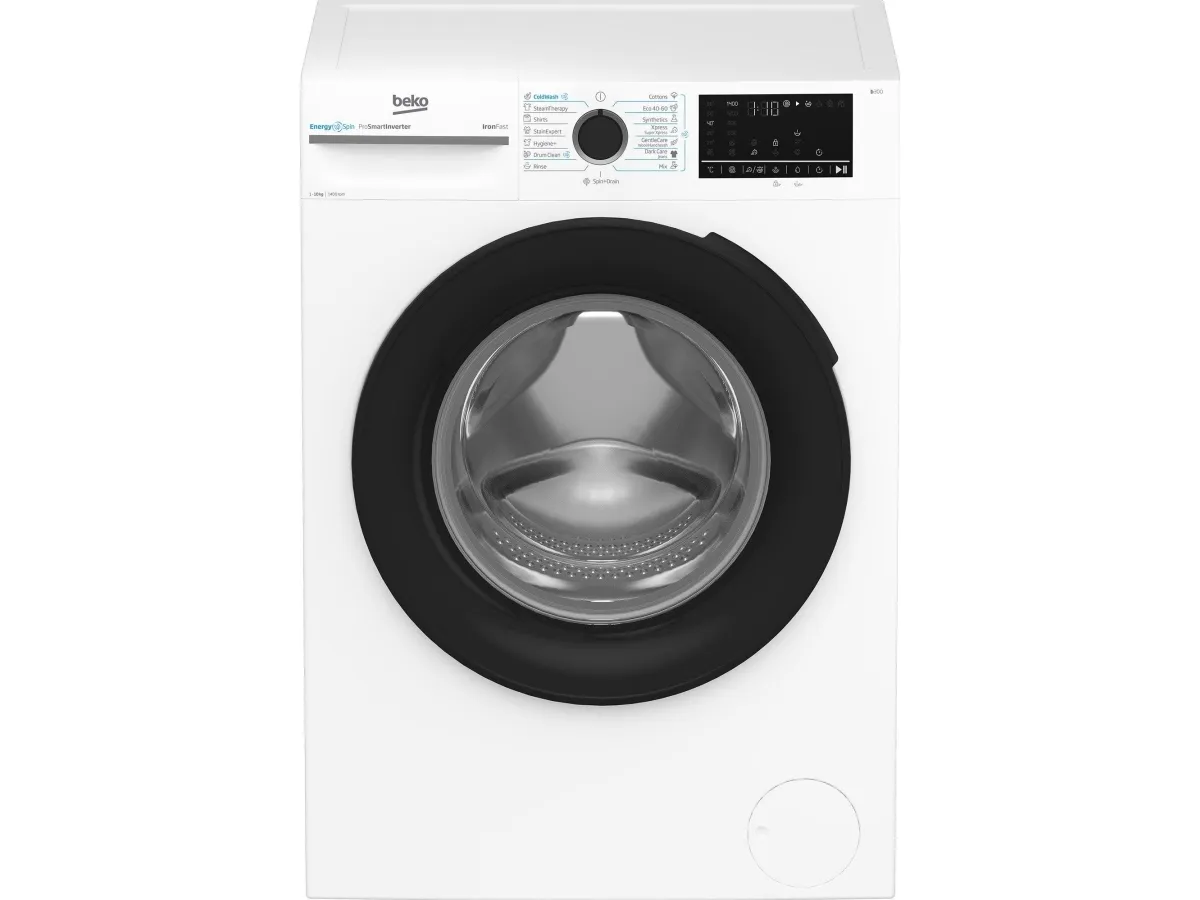 Brand- Beko. Model- BM3WFU410415WB. Width- 60 cm. Depth- 55.3 cm. Height- 84.5 cm. Colour- White. Weight- 75 kg. Energy Efficiency Class- A. Electric motor type- Without brushes. Water consumption per cycle- 51 l. Temperature setting- Cold, 20 °C, 60 °C, 30 °C, 40 °C, 90 °C. Drilling efficiency class- B. Washing efficiency class- A. Washing capacity- 10 kg. Drilling, rpm- 1400. Control- Electronic. Number of applications- 15. Washing programs- Eco 40-60, Washing in cold water, Mini/Mini14', Wool washing program, Manual (gentle) washing, Cotton, Synthetics, Steam treatment, Rinse and spin, Spin and drain, Delicate program, Denim program, Anti Stain program, Hygiene program, Drum clean. Screen- Yes. Screen type- LED. Noise level during drilling- 75 dB. Water spill protection- Yes. Postponement of the start of the program- Yes. Door opening angle- 170 °. Child safety function- Yes. Mandatory warranty- 24 mo.