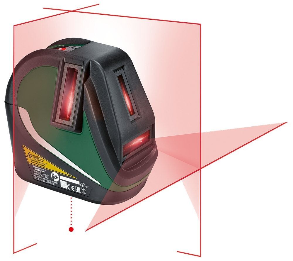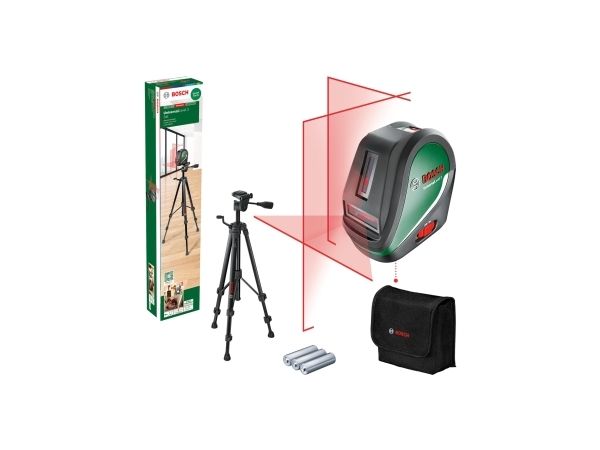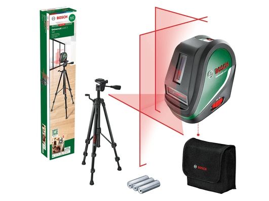 Whether the job involves laying new floor tiles or installing a shower cubicle or drywall, the Bosch UniversalLevel 3 makes tricky tasks easy. Thanks to its laser cross and second vertical laser line, the cross-line laser can be used for horizontal, vertical, and right-angled alignment. The second vertical laser line forms a 90° reference to the first line, enabling precise alignment in any room. Use the incline function for jobs out of the self-levelling range, such as installing stair railings. Its 120° opening angle projects longer laser lines, for accurate projections even at short distances. It also features an integrated 1/4' tripod thread along with a levelling accuracy of +/- 0.5 mm/m and a 10-m maximum go-in range.