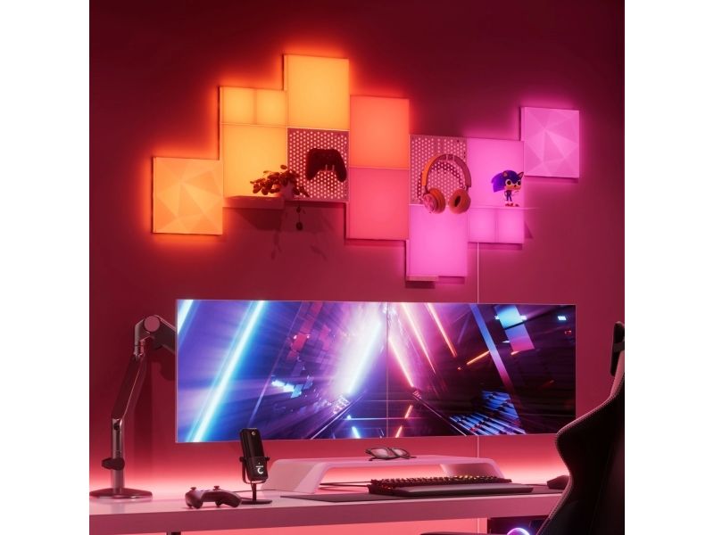 The Nanoleaf Blocks Combo XL Smarter Kit transforms any space with its interactive light panel design, allowing for creativity. With compatibility for Razer Chroma RGB, this kit can sync with your gaming environment, creating visuals that enhance the overall experience. The built-in rhythm music visualizer responds to your favorite tracks, creating a display that dances along with the beat. This light panel kit is designed for indoor usage and operates through your preferred smart home applications such as Google Home, Apple Home, and Amazon Alexa. The LED panels offer RGB and white light illumination, allowing for a range of color temperatures from 1200 K to 6500 K. The combination of customizable lighting features and easy connectivity makes this product an addition to any modern home.