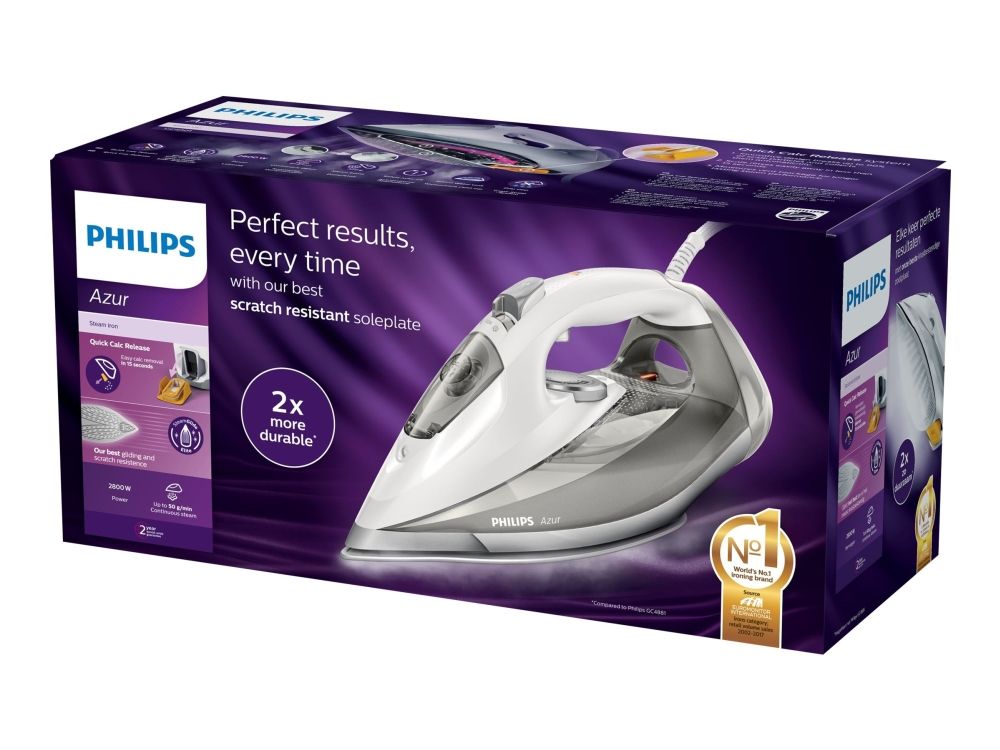 [OUTLET] - Philips Azur GC4901 - Dampstrygejern med automatisk afbrydelse - såleplade: SteamGlide Elite - 2800 W