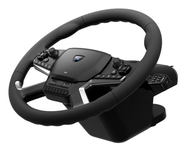 Get behind the wheel of your very own big rig with the HORI Force Feedback Truck Control System for PC. Featuring a full-size wheel to match those found on actual lorries! Dual motor force feedback brings unparalleled realism to the weight and feel of the wheel as you turn and navigate over various road surfaces. Additional on-board controls include left and right levers for headlight and brake controls. Sturdy, metal pedals with contactless magnetic sensors provide incredible accuracy and extreme durability. Enjoy the open road with HORI’s Force Feedback Truck Control System!