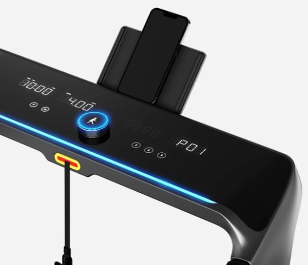 LED display With the SpeedDial Knob and the K5 Fit app, you can easily adjust the speed to suit your needs. The treadmill also connects via Bluetooth, allowing you to sync with your Apple Watch so you can track your performance and progress. The integrated LED display on the treadmill provides clear and easy-to-read information on time, speed and distance.Kingsmith X218 WalkingPad electric treadmill. Maximum user weight: 136 kg, Minimum speed: 1 km/h, Maximum speed: 18 km/h. Display: LED, Backlight colour: White. AC input voltage: 220 V. Running area (W x L): 510 x 1400 mm, Width: 840 mm, Depth: 1620 mm
