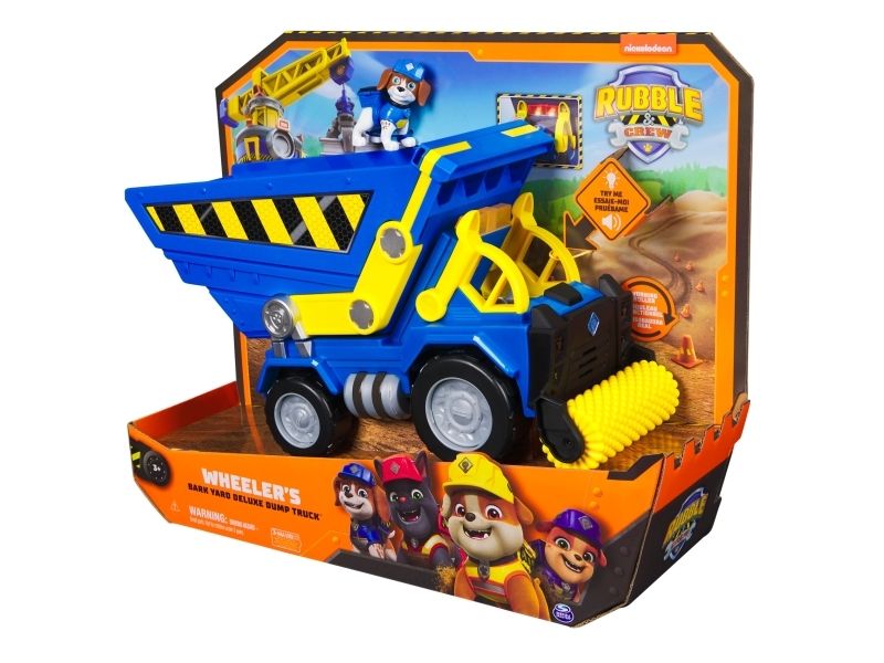 Slut dig til din yndlingsvovse fra PAW Patrol, Wheeler, i hans Deluxe Dumper. Dette PAWsome bygge-legetøj har drejende hjul og spændende lys og lyd, der gør det til et must-have for fans af Rubble & Crew-serien. Dette fantastiske sæt indeholder en Wheeler-figur, der er ca 5 cm høj og har sit officielle Rubble & Crew arbejdstøj på, så han ser ud, som han gør i serien. Når det er tid til action, kan du sætte Rubble fast på førersædet og trykke ned på ham for at aktivere de spændende lys- og lydeffekter, som du kender fra serien. Vil du på endnu flere spændende lege- og byggemissioner, kan du kigge efter Rubble & Crew-legetøj, -plyslegetøj og -figursæt med Kinetic Sand (sælges separat). sammen med Rubble & Crew Krantårn Legesættet og Rubble & Crew Rubbles Værksted Legesættet for at udvide din bygge-verden (sælges separat). Tag spændingen fra Rubble & Crew-serien med dig hjem med Rubble & Crew Deluxe Wheeler Køretøj.