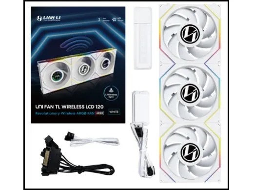 PRACTICAL AND STYLISH LCD SCREEN The UNI FAN TL LCD Wireless carries forward the legacy of the world’s first LCD-equipped fan. It features a 1.6” circular LCD screen with 60Hz refresh rate (upgraded from 30Hz) that integrates seamlessly with LIAN LI’s L-Connect 3 software, offering exceptional customizability.