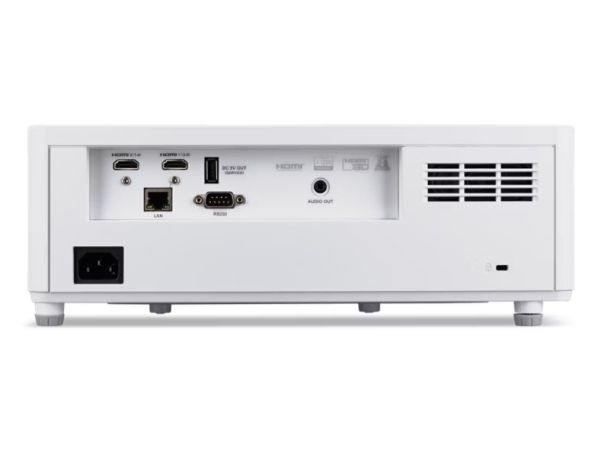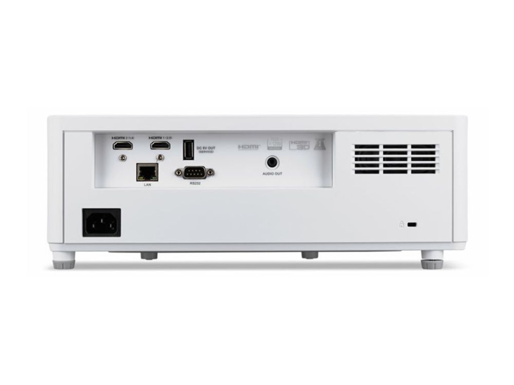 The Acer PL6620 supports a maximum screen size of 762 cm and offers flexibility with features like 4-corner correction and wall-color compensation. With a laser diode lamp life of up to 30,000 hours in economic mode and 20,000 hours in normal mode, this projector is designed for long-term use. It also provides input options including HDMI, VGA, and audio line-out, making it suitable for different types of presentations and multimedia setups.