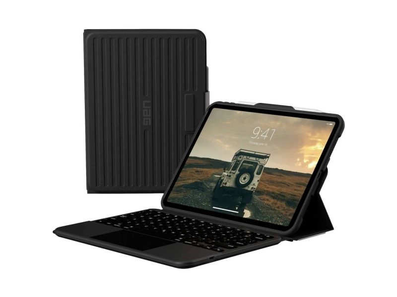 The UAG Rugged Bluetooth Keyboard with Trackpad utilizes a rugged, non-slip exterior and other premium features that represent UAG's commitment to protection. With Bluetooth connectivity, the rugged keyboard offers a superior laptop-style typing experience and tracking. Featuring a spill-resistant keyboard with comfortably spaced backlit keys. Extra-large multi-touch trackpad with gesture support so you can swipe, tap, pinch, and scroll. Laptop-like experience with the adjustable magnetic stand that offers four viewing modes that let you type, view, sketch, or read. A rechargeable long-lasting battery that allows very long of battery life (depending on usage). Premium tactical grip exterior provides secure handling. Apple Pencil storage so you can have your Pencil close and handy. Work from anywhere with the UAG Rugged Bluetooth keyboard and detachable case.