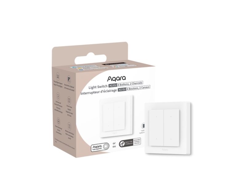 Aqara Light Switch H2 EU is a smart switch based on Matter over Thread and Zigbee communication protocol that can control lights and other devices with great flexibility and compatibility. It fits standard 55 mm switch frames, and features optional neutral wiring for more installation flexibility. It allows for remote control, scheduling, power monitoring, wireless switch mode, and other functions, and the MARS-Tech, which greatly improves the reliability of smart connections for Aqara Switch and Aqara light.