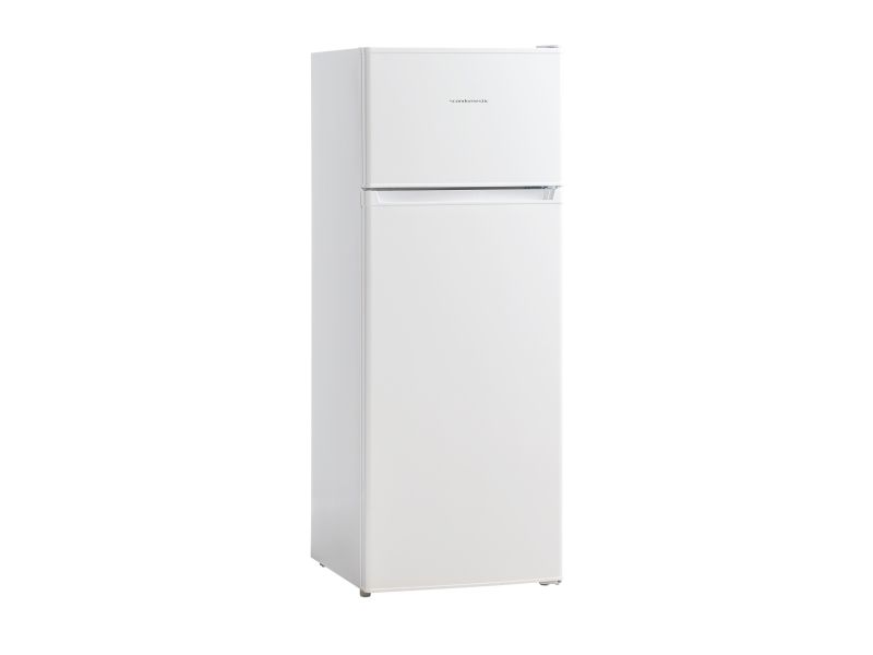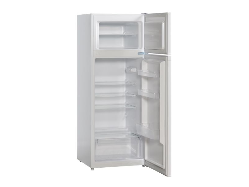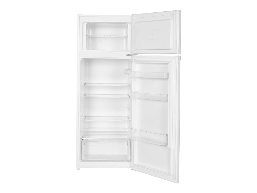 Discover the Scandomestic CBF206WE, a refrigerator/freezer designed to meet the needs of modern households. This appliance combines efficiency, capacity, and convenience in one package. With an energy class of D, it ensures low power consumption, saving you money on electricity bills without sacrificing performance. The total net capacity of 206 liters, split between a 169-liter refrigerator and a 37-liter freezer, provides ample space for all your food storage needs. The unit features reversible doors and adjustable feet, offering flexibility in installation and ensuring it fits perfectly in your kitchen. Static cooling technology maintains a consistent temperature throughout, preserving food freshness and quality. Additionally, the quiet operation at 40 dB(A) means this refrigerator/freezer won't interrupt your home life. LED interior lighting, an integrated handle design, and mechanical controls add to the convenience, making the Scandomestic CBF206WE an excellent choice for those seeking a reliable and user-friendly refrigerator/freezer.