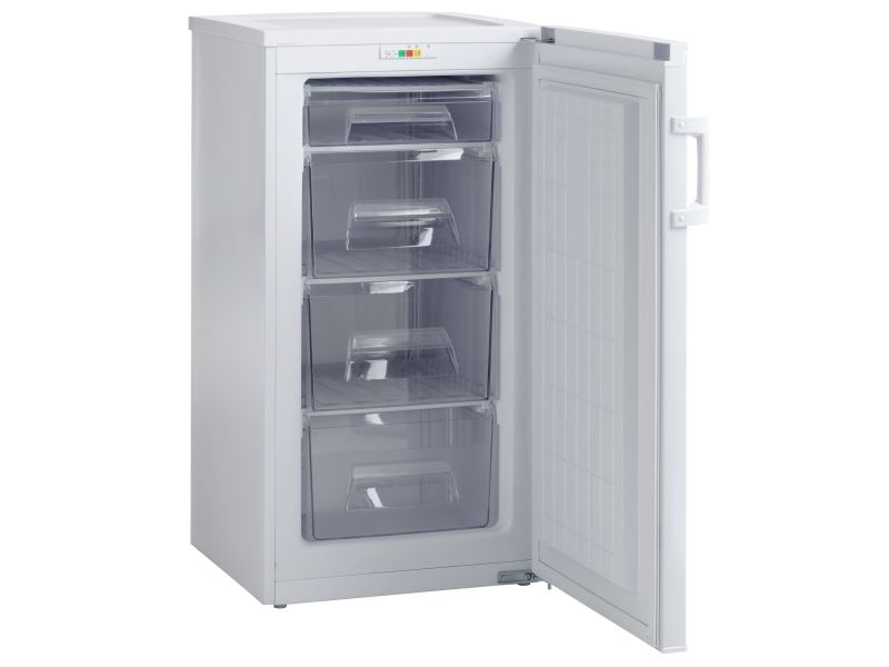 The Scandomestic FRF99WE upright freezer offers a 99-liter capacity, making it a choice for storing frozen food efficiently. With a noise level of only 39 dB(A), this freezer operates quietly, ensuring it won’t disrupt your home environment. The static cooling system and mechanical control provide reliable temperature management, while the temperature alert feature gives visual notifications to ensure food stays at the desired temperature. It has reversible doors and adjustable front feet for hassle-free placement in any kitchen or utility space.