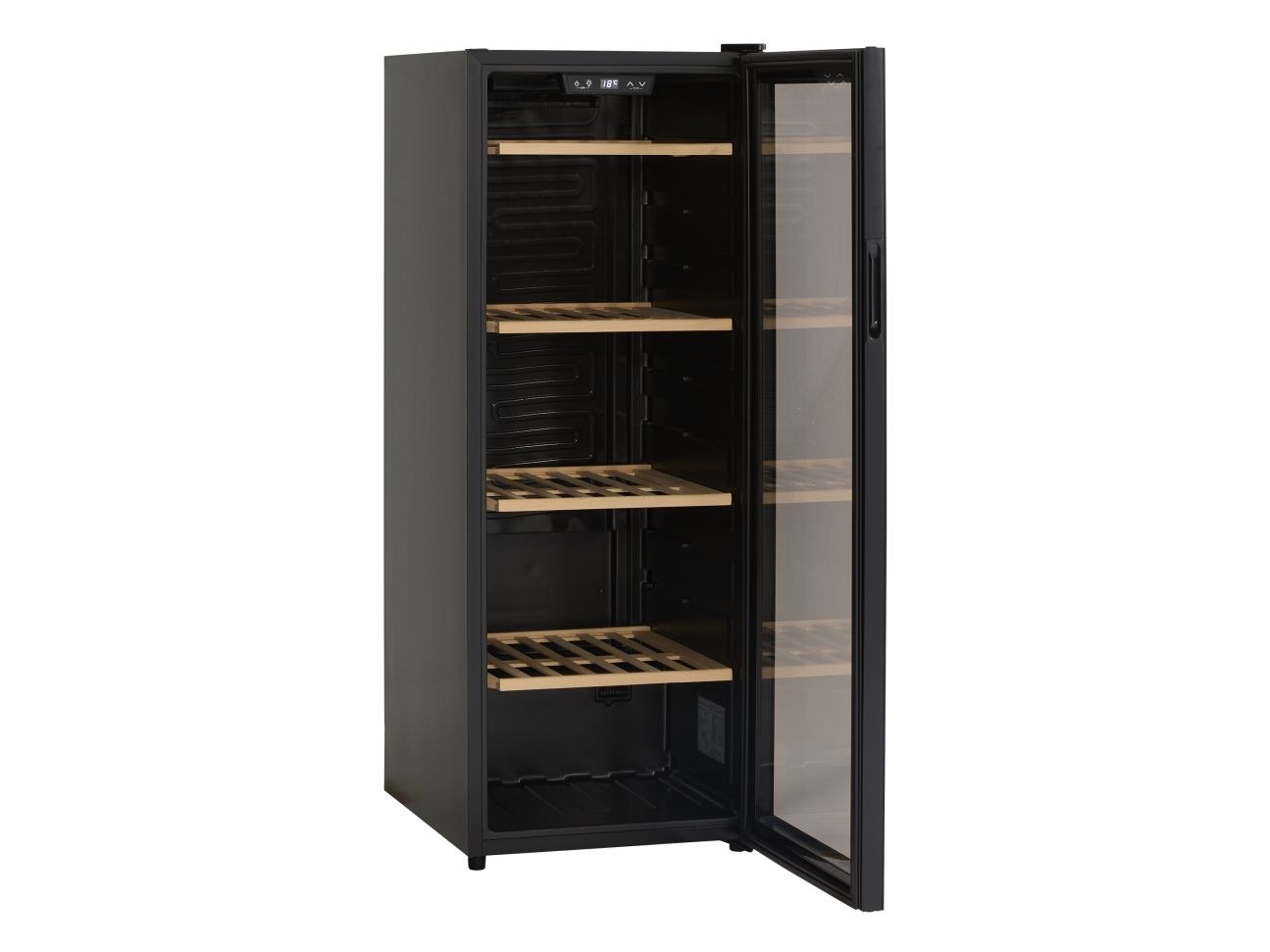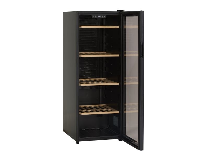 Den angivende flaskekapacitet er udregnet med en bordeauxflaske som standard og uden hylder i skabet. Dvs. at det faktiske antal af flasker som skabet kan indeholde, med hylder monteret, vil være mindre end den angivne mængde i produktets specifikationer.