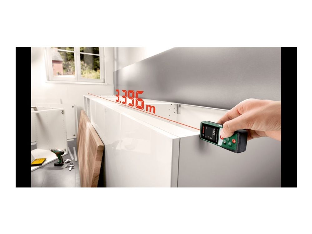 Renovation planning at your fingertips. Not only does the UniversalDistance 40°C measure distances up to 40m with laser precision but it also provides furniture dimensions at a glance. Its integrated functions enable area and volume calculations to determine the amount of material needed for jobs such as flooring installations and even wallpaper or paint for wall projects. Results are featured on a high-quality color display for optimum readability.