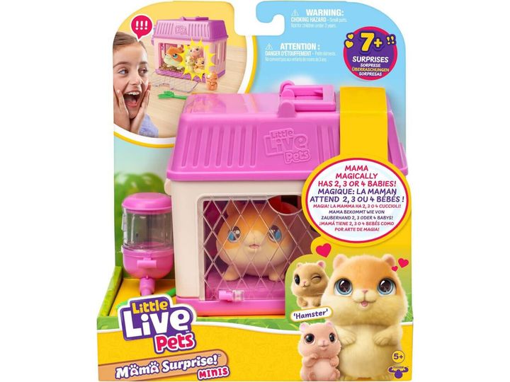 Little Live Pets Mama Surprise Minis takes caring for your pet to a whole new level. Experience the joy of caring for your Mama and watch as she has 2, 3, or 4 surprise baby hamsters!
