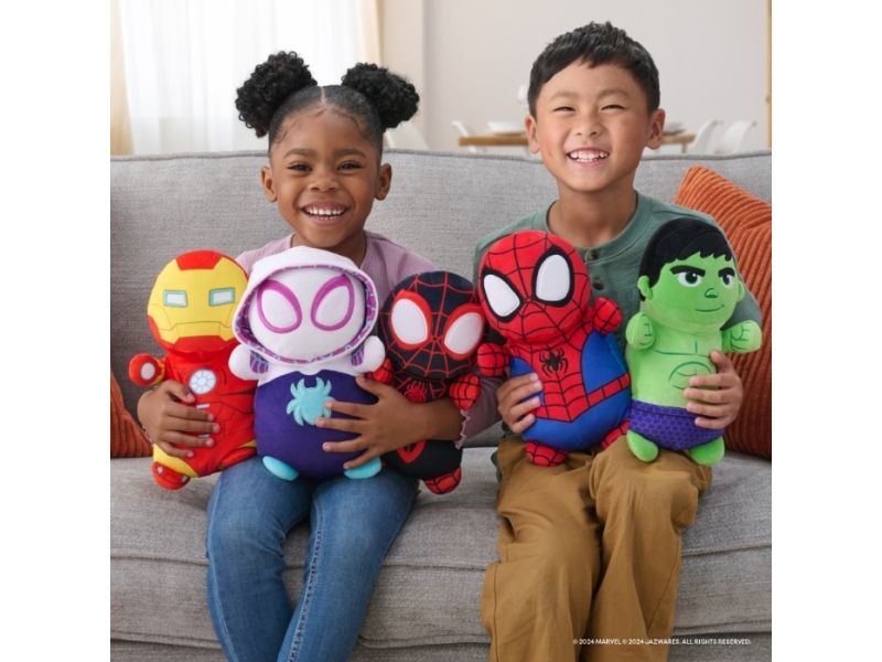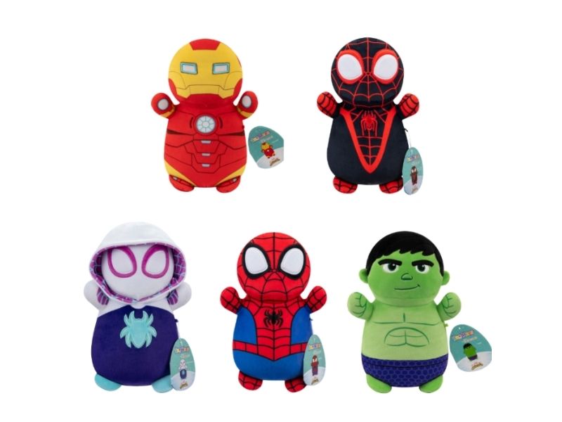 SQUAD UP: Grow your Squishmallows Squad with the super-soft Spidey, Spin, or Ghost-Spider HugMees plush.