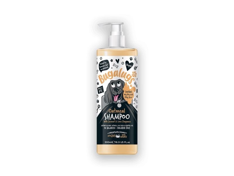 Bugalugs Dog Shampoo Oatmeal & Aloe er blevet en favorit blandt hundefrisører og i hjem verden over! Velegnet til hvalpe over 8 uger og til alle pelstyper. Parabenfri sensitiv shampoo til hunde med en duft af kokos og lime. Den professionelle hundeshampoo er lavet med vand fra Lake District, England, og er en fantastisk hvalpeshampoo til følsom hud.