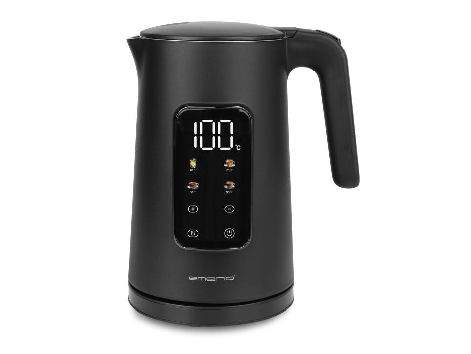 The Emerio WK-132229 kettle is designed for functionality and convenience, making tea and coffee preparation smooth and efficient. With a capacity of 1.7 liters, it features a 360 degree connector base for easy pouring from any angle. The concealed heating element ensures quick boiling while keeping the exterior cool, and the internal water level indicator lets users see the amount of water inside at a glance. A keep warm function maintains temperature for up to 2 hours, perfect for serving multiple cups without the need to reboil. Touch-sensitive controls allow for easy operation, offering 13 temperature settings to suit different beverage requirements. Its BPA-free construction and cold walls ensure user safety during use.
