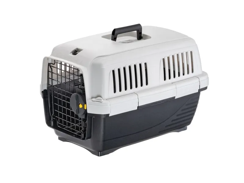 Clipper 1 Transportkasse fra Ferplast Ferplast Clipper transportkasser er ideelle til at transportere hunde og katte i overensstemmelse med IATA-reglerne. Transportkasserne er fremstillet af solide materialer og har en robust dør af stål med en 2-punkts sikkerhedslås. Der er også mulighed for ekstra fastgørelse af døren for øget sikkerhed. Kassen har ventilationssprækker på siderne for at sikre behagelige forhold for dit kæledyr under rejsen. Den er let at vedligeholde, da bunden og taget kan adskilles til rengøring, og den har et praktisk foldbart håndtag for nem transport. Transportkassen fås i forskellige størrelser, så du kan finde den, der passer bedst til dit kæledyr. Husk at tjekke med flyselskabet for specifikke boardingregler, før du rejser.