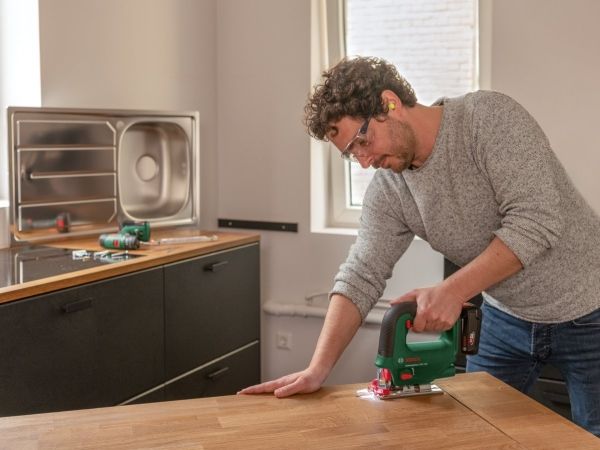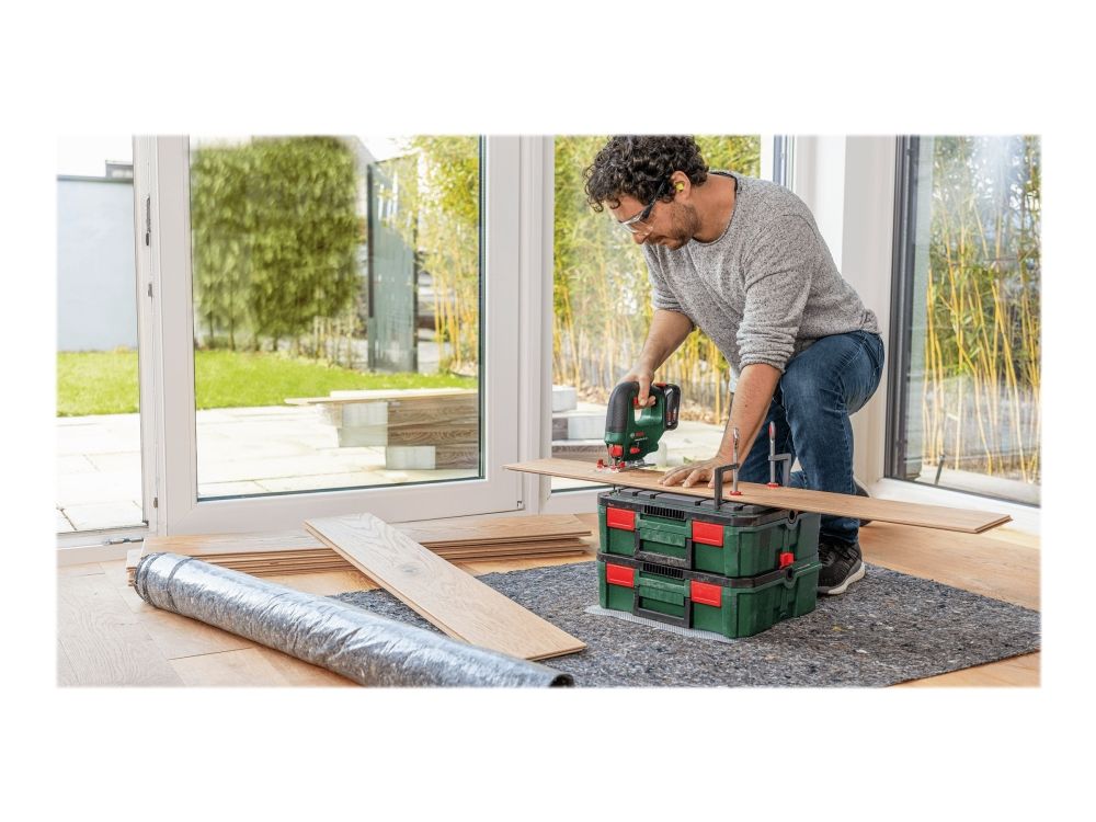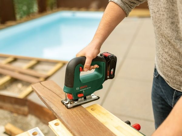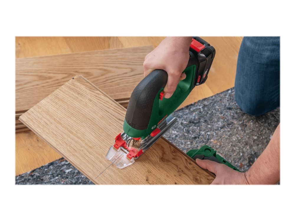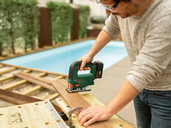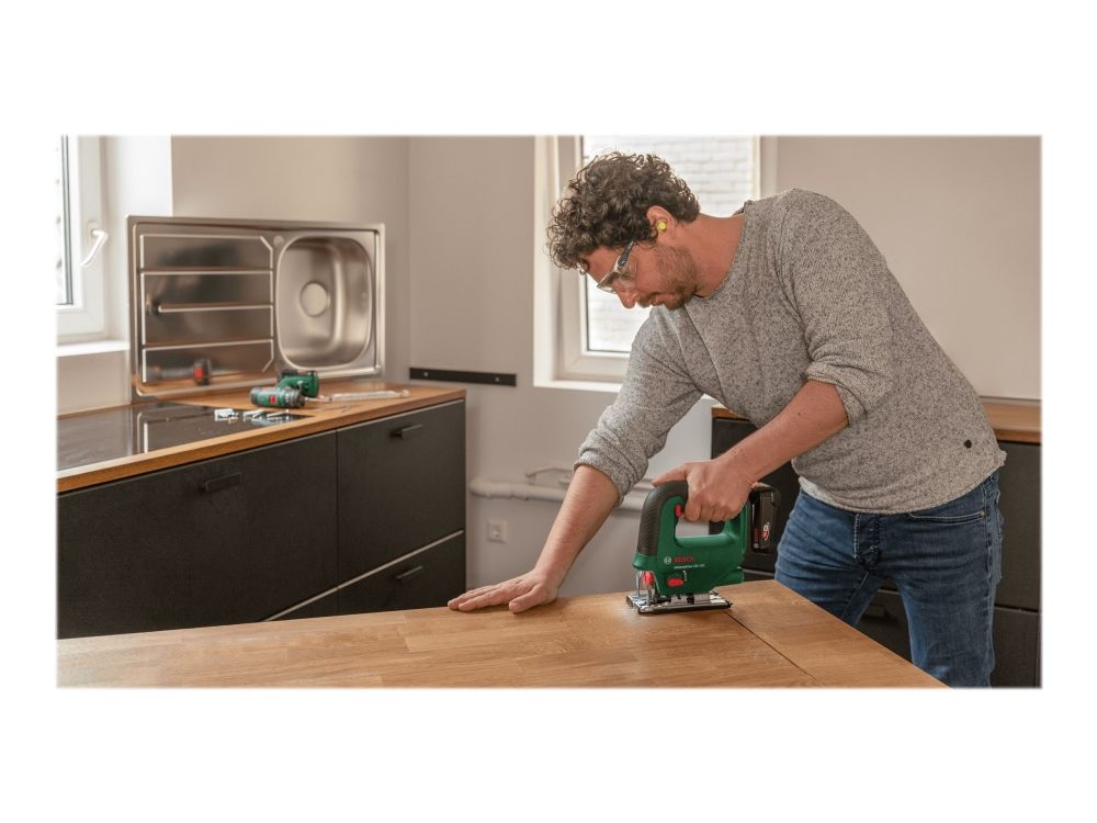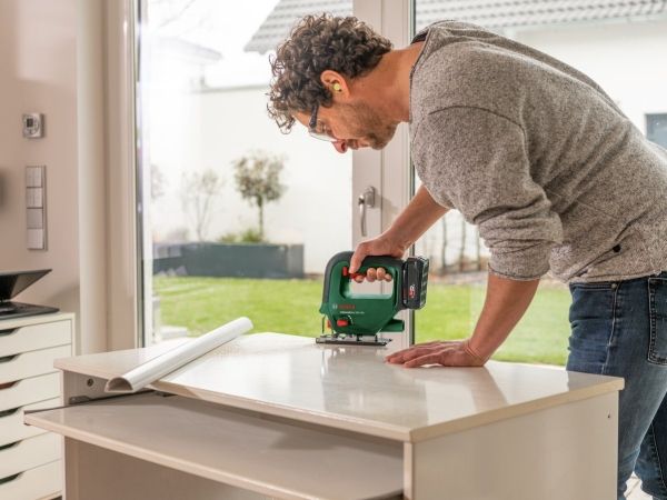 For an array of home sawing jobs, whether it's cutting parquet or making shelves, the cordless UniversalSaw 18V-100 takes it all. It offers a cutting depth of 100 mm in wood and up to 8 mm in steel and comes with a selection of useful accessories. This jigsaw delivers a top job with speed thanks to a 4 steps pendulum, which pushes the blade through even the hardiest materials. Advanced and newbie DIYers will appreciate the comfortable, soft start and adjustable power control of the speed trigger, as well as the SDS system which provides comfortable and easy blade changing.