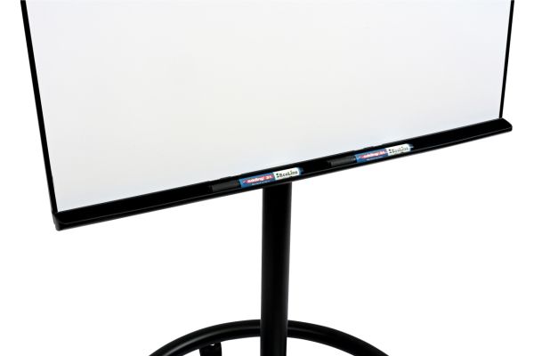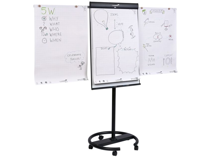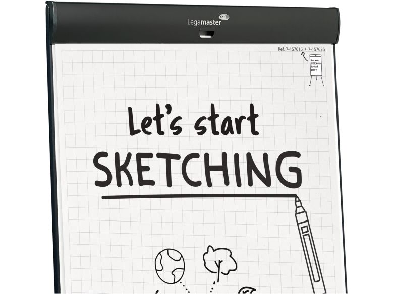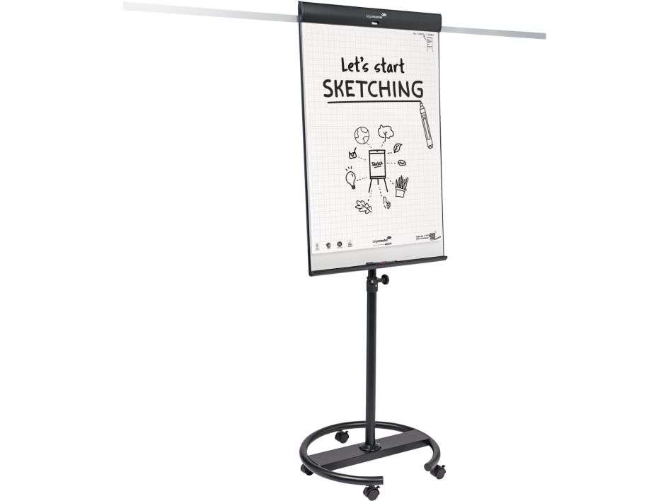 Legamaster SKETCH PRO mobilt flipchart med Rundfod Robust mobilt flipchart til hyppig brug Papirklemme af pulverbelagt stål og justerbar papirkrog Passer til alle standard-papirblokformater Magnetisk og tørt whiteboard-overflade af lakeret stål (H 105 cm x B 68 cm) Brug en Flipchartblok eller som whiteboard Magnetisk udklappelige sidevinger udvider præsentationsfladen Kan indstilles i højden: Den ideelle skrivehøjde kan nemt indstilles Maksimal højde: 205 cm rund fod med en diameter på 64 cm Rundfod med 5 fikserbare hjul. Låsbare hjul sørger for perfekt stabilitet og mobilitet Enkel montering: Skruenøgle til montering af rullerne medfølger Leveringen af startsættet: 1x SKETCH ECO-papirblokraster, 2x Edding 31 Ecoline Flipchart-marker (specielt udviklet til skrivning og markering på Flipchartpapir) samt en markopbevaring i fuld bredde, to udtrækkelige sidevinge og monteringsvejledning TÜV GS (testet sikkerhed) certificeret: Garanterer højeste sikkerhed og testet kvalitet i henhold til tyske standarder SKETCH PRO serien er designet til intensiv brug og består af robuste materialer, der sikrer en holdbar ydeevne. Dette produkt består af materialer fra bæredygtigt forvaltede skove med FSC®-certificeret skove og andre kontrollerede kilder (FSC C158462). Optimeret detailemballage: Attraktiv og funktionel emballage forbedrer produkternes synlighed og gør det let for kunderne at finde den rigtige løsning. Mange komponenter i SKETCH PRO flipcharts er aftagelige, så de efter behov nemt kan udskiftes eller repareres.